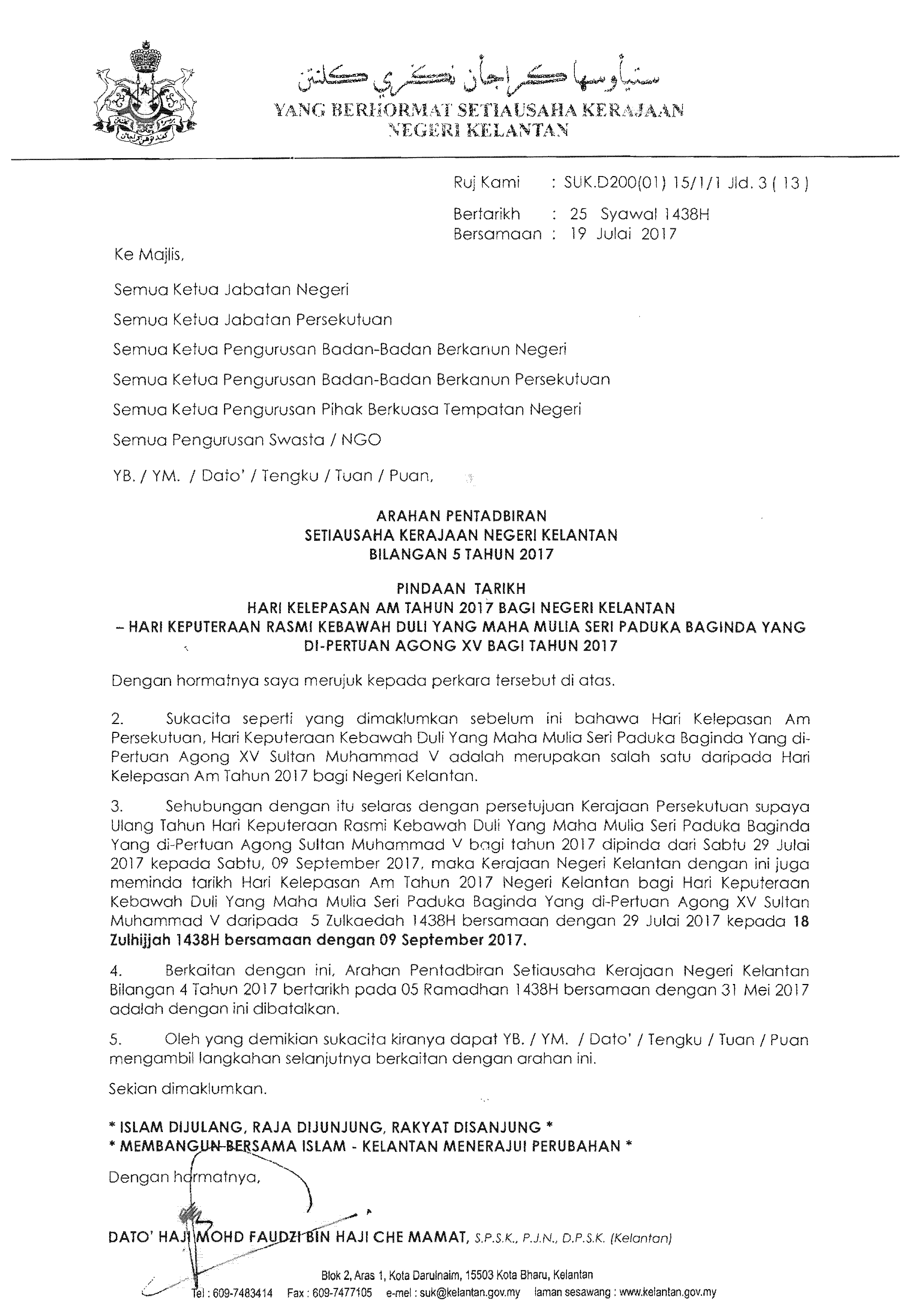 Arahan Pentadbiran Bil. 4 Tahun 2017