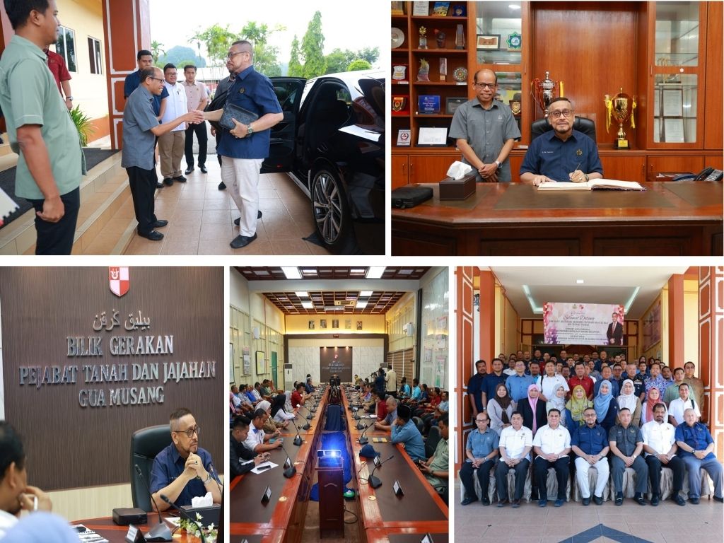 Lawatan dimulakan di Bilik Gerakan Pejabat Tanah dan Jajahan Gua Musang dengan sesi taklimat pembangunan oleh Ketua Jajahan Gua Musang. Taklimat komprehensif tersebut merangkumi pelaksanaan projek semasa, cabaran yang dihadapi serta cadangan strategik bagi memperkukuh kemajuan jajahan.